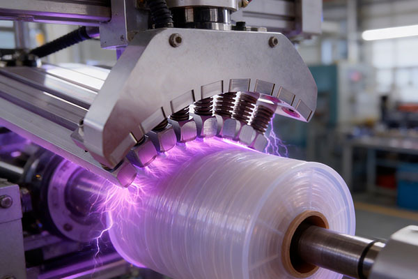 Para garantir que a impressão fixe corretamente no plástico, oferecemos o tratamento corona de forma terceirizada. O cliente envia as bobinas prontas e nós realizamos o tratamento, melhorando a aderência da tinta e evitando que a arte se apague com o manuseio ou o tempo.