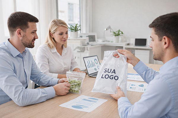 Sacos plásticos com impressão personalizada conforme arte fornecida pelo cliente. Indicados para empresas que buscam padronização visual, identificação de marca e apresentação profissional dos produtos.