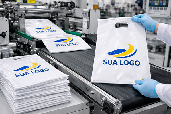 Sacolas plásticas com alça vazada, fabricadas em polietileno, indicadas para transporte de produtos em operações comerciais, industriais e de distribuição. Possuem boa resistência e acabamento, com possibilidade de personalização de cores conforme necessidade do cliente.